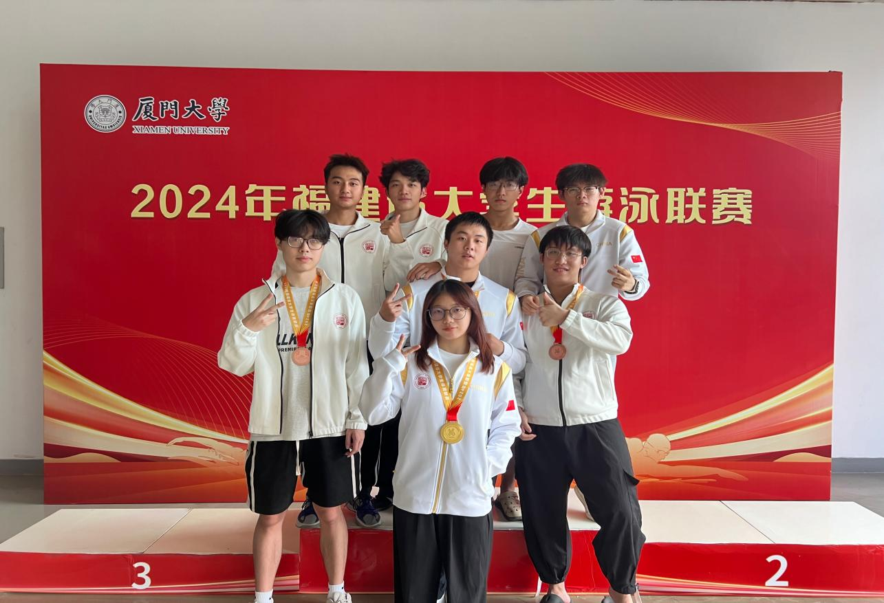 近日,我校游泳队在2024年福建省大学生游泳联赛中大放异彩。该赛事于厦门大学翔安校区举行,汇聚了全省31所高校的200余名运动员参赛。我校游泳队凭借9名精英队员的出色发挥,在强手如林的竞争中脱颖而出,斩获了包括1枚金牌、1枚银牌、2枚铜牌在内的多项荣誉,同时还获得了1个第四名、5个第五名、1个第六名以及5个第七名的好成绩,并在甲组团体总分排名中占据第九名。具体获奖情况如下: