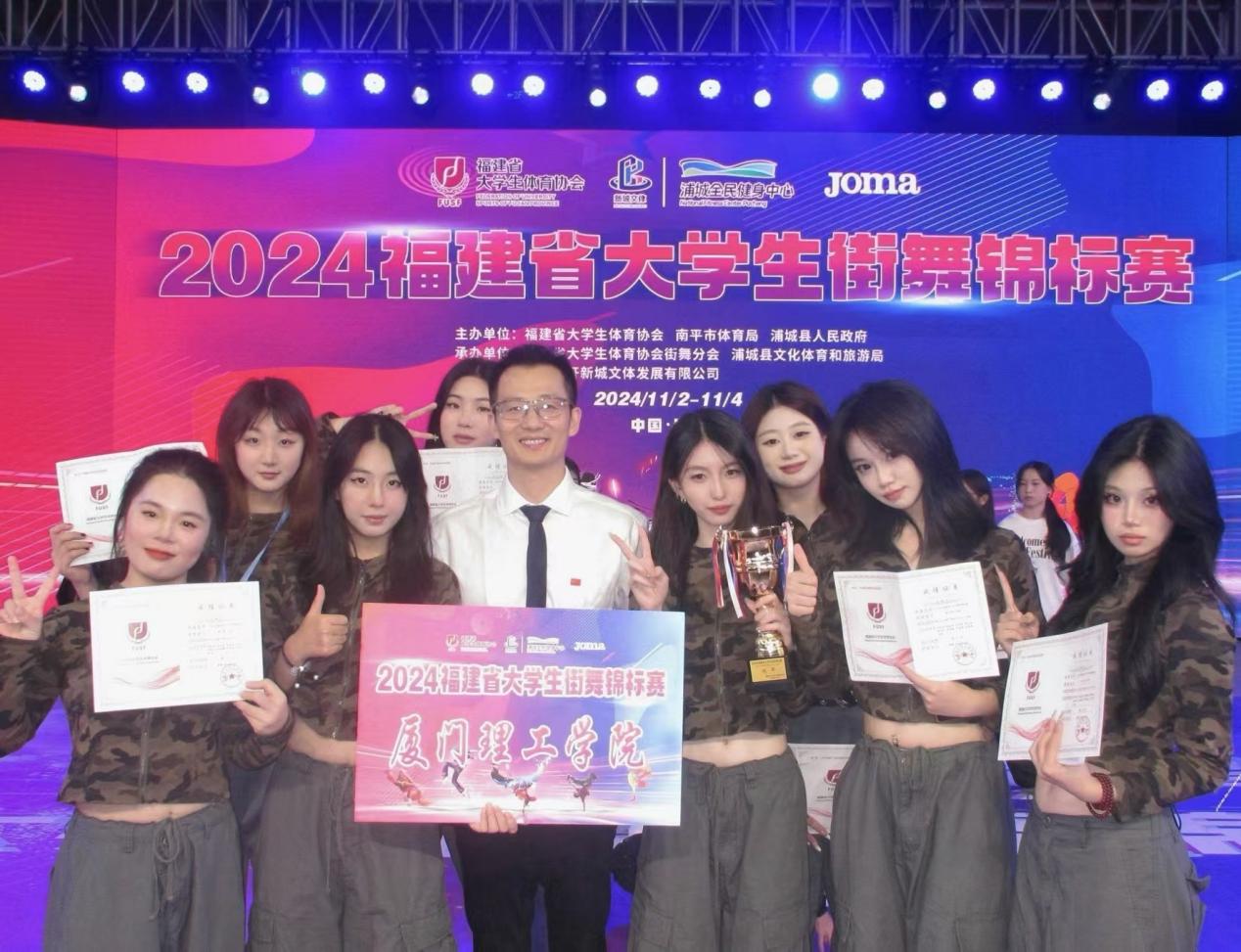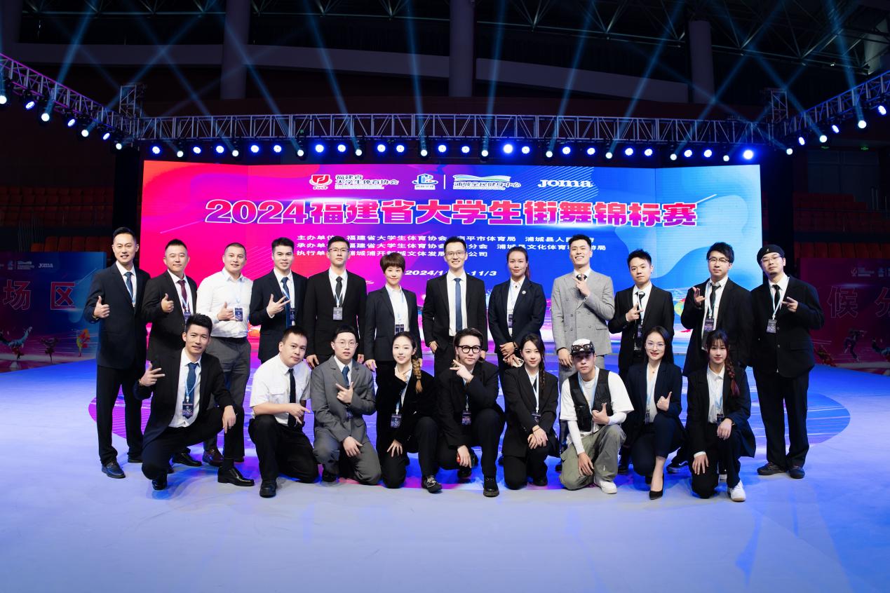 此外,我校体育部李浚东老师作为福建省大学生体育协会街舞专委会的秘书长出席本次大赛,并担任比赛总裁判长工作。李老师的指导与评判,不仅确保了比赛的顺利进行与结果的公平公正,也为推动福建省大学生街舞运动的健康发展做出了积极贡献。