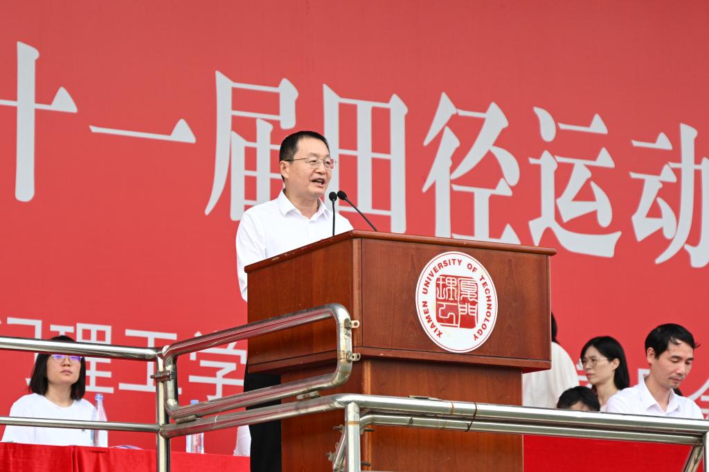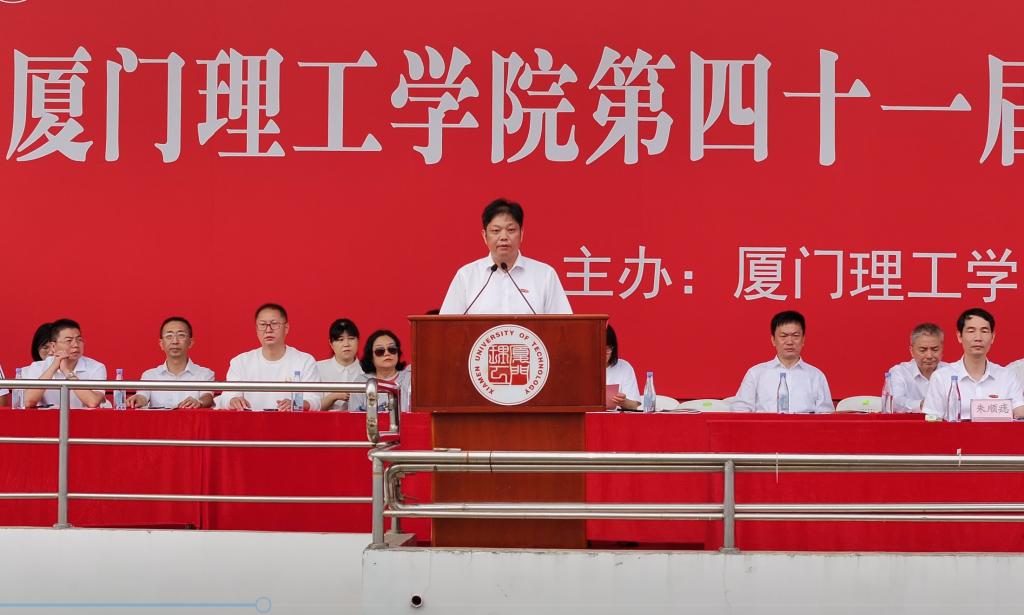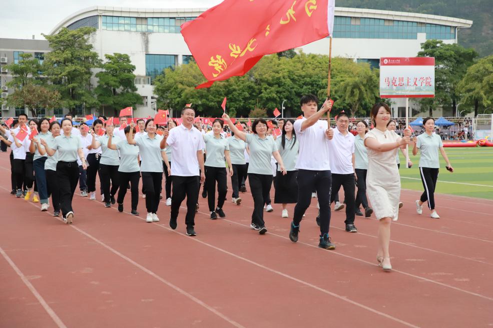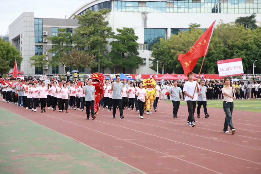 11月14日上午,我校第四十一届田径运动会、第十二届校工趣味运动会在南体育场正式开幕。校领导林进川、陈洪尧、潘登、方晓冬、朱顺痣,各职能部门和二级学院负责人出席开幕式。校党委潘登副书记主持开幕式。全校师生齐聚,共同迎接这一体育盛事。