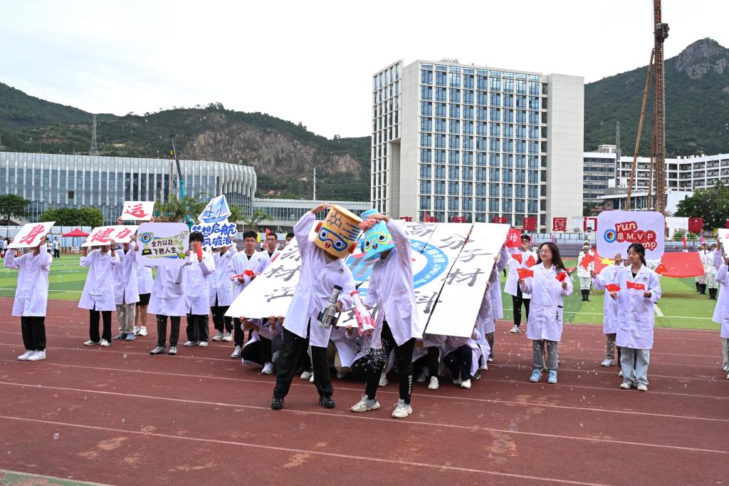 随着潘登副书记宣布开幕式正式开始,各代表队身着统一服装,步伐矫健,依次入场。他们喊着响亮的口号,展示着各自的风采和团队精神,为开幕式增添了一抹亮丽的色彩。在庄严的国歌声中,全场师生肃立,奏唱国歌,表达了师生们对祖国的热爱和对体育精神的崇高敬意。