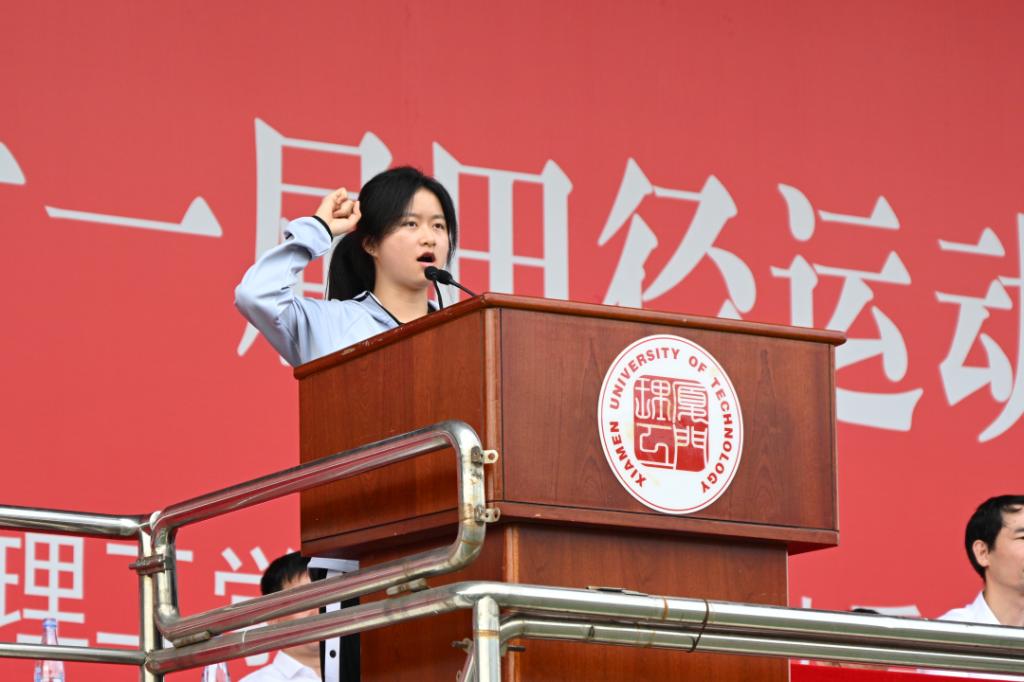 随后,运动员代表苏宝萍同学和裁判员代表赵静茹老师分别上台宣誓,他们表示将严格遵守比赛规则,发扬体育精神,确保比赛的公平、公正和顺利进行。