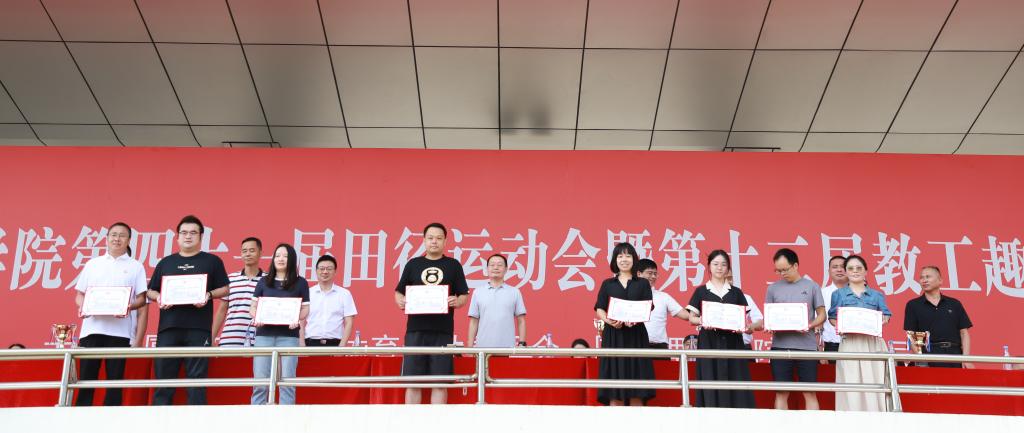 11月16日上午,经过两天半紧张激烈的赛场竞技,我校第十届体育节暨第四十一届田径运动会、第十二届教工趣味运动会在集美校区南体育场圆满闭幕。校党委副书记潘登、校体委全体委员出席闭幕式。