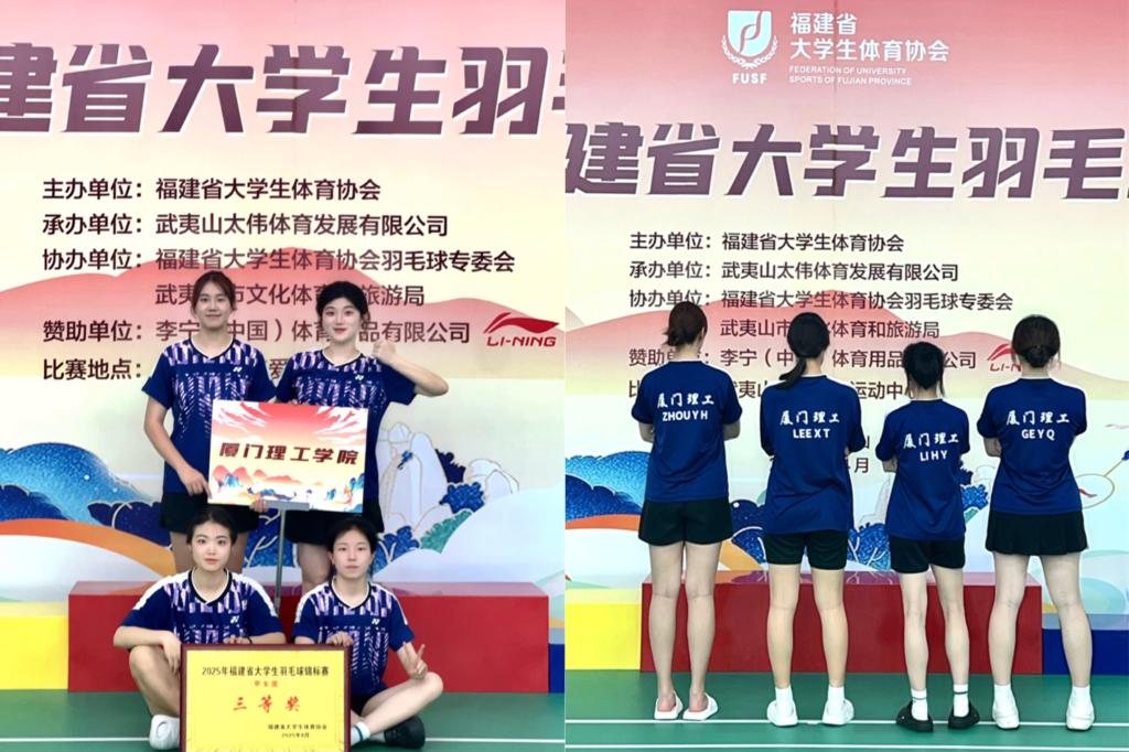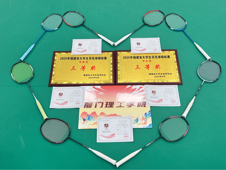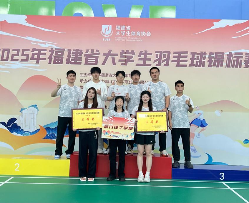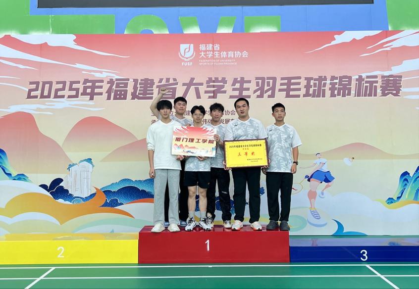 4月9日至13日,由福建省大学生体育协会主办、武夷山太伟爱度运动中心承办的“2025年福建省大学生羽毛球锦标赛”在武夷山太伟爱度运动中心圆满落幕。本届赛事汇聚全省42所高校、400余名运动员,参赛规模与竞技水平再创新高。我校羽毛球队以昂扬斗志与精湛技艺迎战强敌,最终斩获甲组男子团体三等奖、甲组女子团体三等奖(第六名),并在单项赛中勇夺甲组男子单打第七名、甲组女子双打第七名、丙B组男子单打亚军的佳绩,展现了理工健儿的拼搏风采!具体获奖情况如下: